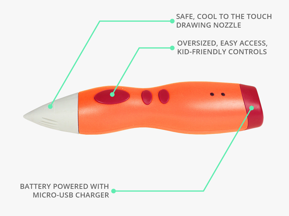 MYNT3D Junior is designed specifically for kids ages 6-12 with a super-comfortable ergonomic design and safe low temperature nozzle.